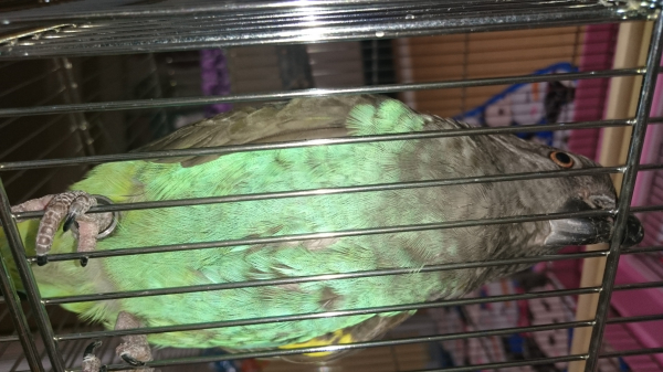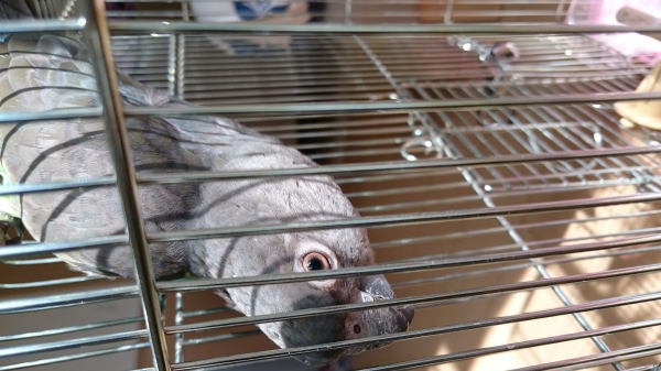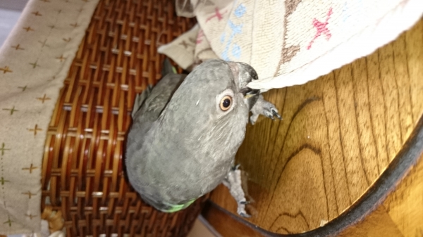 先程興奮して噛みつかれまして、ダメと叱って籠に戻した所、