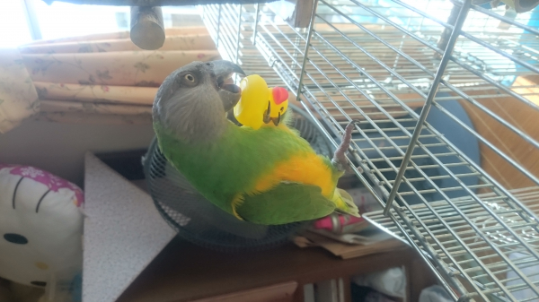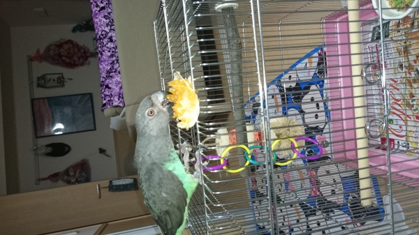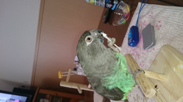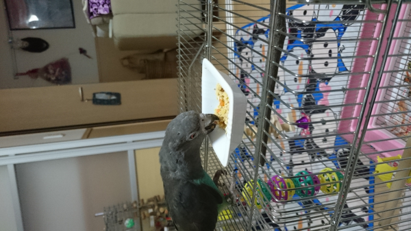 今は好きなものは逆さま時に渡しても止まり木に移動して大切に大切に食べてる(移動時に落としたりしちゃうけど)