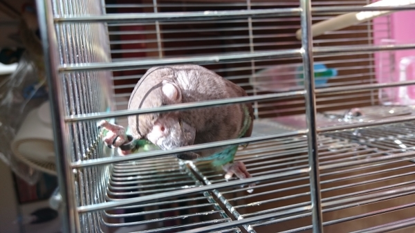 ペッパーは、荒の3才でまだ来てから1ヶ月しか経ってないですが、かなりのビビりです。メロンとは真逆の性格ですよ。ハネナガ属でも、こんなに違うのか?と驚きました。でも、手を出しても噛まなくはなりましたね(^_^)手には、自分からは乗らないですが。あと、鳴き声は可愛(^3^)/