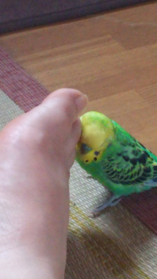 今くりおはゴーゴーペンギンで連打しながらつついてます(笑)たまに獲物を捕らえたように足でゴーゴーペンギンの頭を踏みつけたりしてます(笑)
