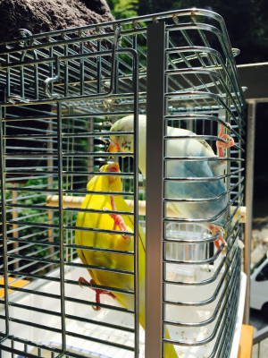 仲良さげなので、ケージを一緒にしてみたり。