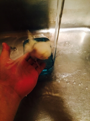 夜はフクが水浴び。
