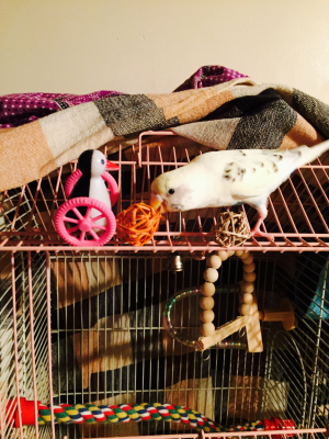 先程、ぎゃすぎゃすバザバサとプリが騒いでいたので、虫かなんかあらわれたか?と、思いケージ内を見てみる。
