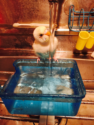 フクは水浴びが好きなので、絶対喜ぶと思ったのだけど、すかさず逃げていく。