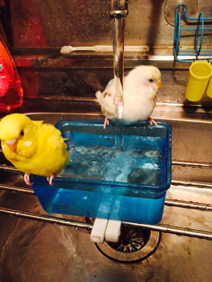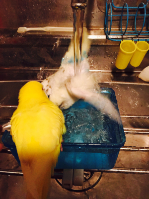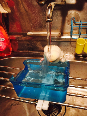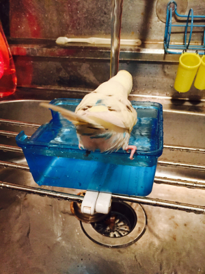 プリはあまり水浴びをしないので、逃げると思っていたけど、きゃはー!と楽しそうに浴びている。