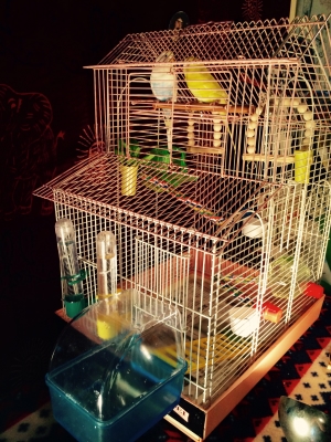 洗いたてのケージをひとつだけ組み立てて、いそいそケージ内を御二方仕様に変えてみる。