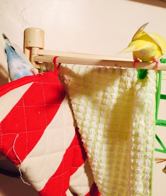 そんで、布巾掛けにちょこんと着地して、寝るわ寝るわ。