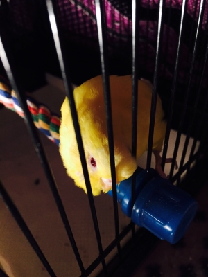 全力で遊んだ後、まずはプリをフクのケージへ。