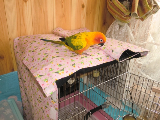 それにしても、素敵なケージカバーですね!!拡大するとセキセイインコの柄なのね(*≧∀≦*)