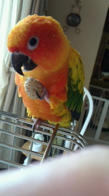 本やネットでは発揚の時に与えないほうがいいとありますが、主治医に今日聞いてみたら、タンパク質は大事なので(特に換羽の時)与えてもいいそうです。