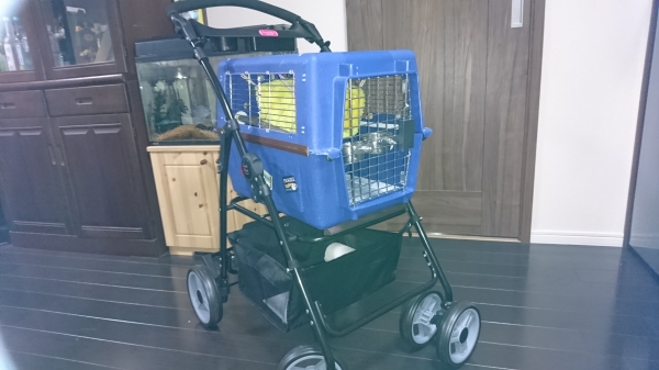 リニューアルしたペットキャリー(脇の上下止めるものを 削りはめ込み式にし)とペットカート(ディア スイートハート)のフレームに乗っかるようにしたので 防寒対策など施せるようにするー