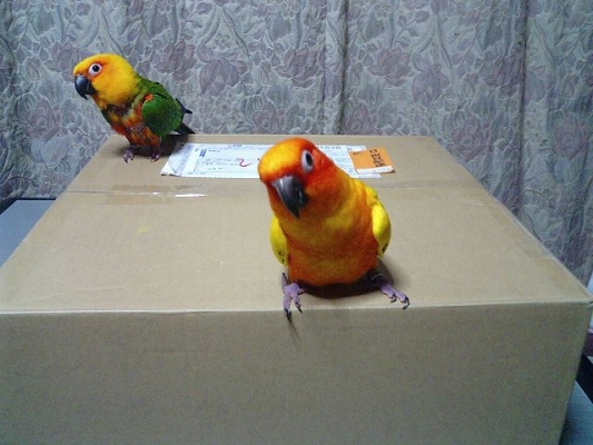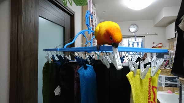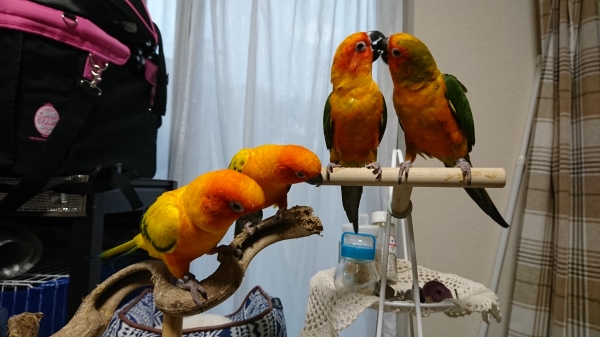 揺れると、インコ達は私の方へトコトコと歩いて来てへばりつき、