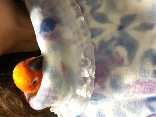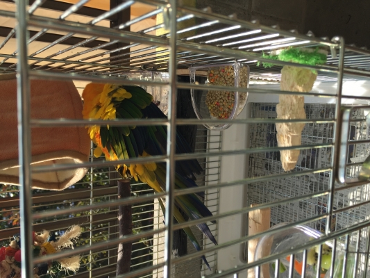 鳥大事 玄関脇にいるKARAさんにも ペット用のベッド用意してあげました