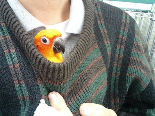 昨日、とうとうスィが服の中に頭を入れて来ました!!