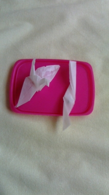 愛美のガラスの爪やすり&薬包紙 しほねぇさぁ〜ん 手作り菜食オモチャだよ 鶴の中に、おやつを発見!