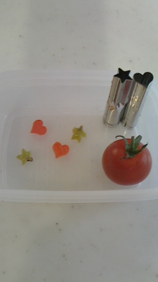 今日は愛美が好きなマンゴーとキウイのドライフルーツでハートとお星さまを作ってみました。