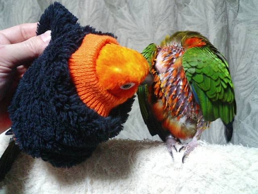 ビリ美がよく婦人の棘をほぐしているので、先程自分もほぐしてみたら、噛まれました(><)鳥と人間では、ほぐし方の加減に違いが有るんでしょうか!?!?