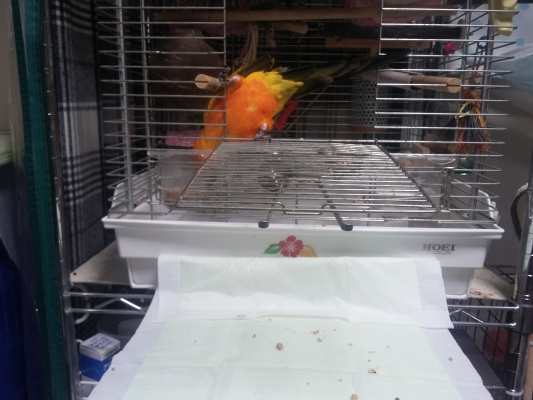 扉の下(ケージの外に)餌こぼし予防の為ペットシーツひいてます←コチラはこの後ははがねさんの トイレになります
