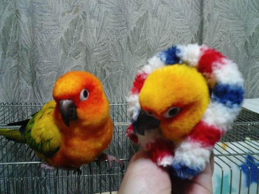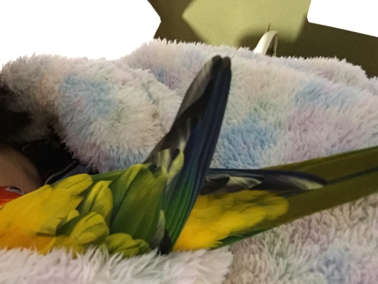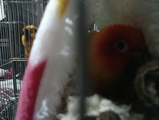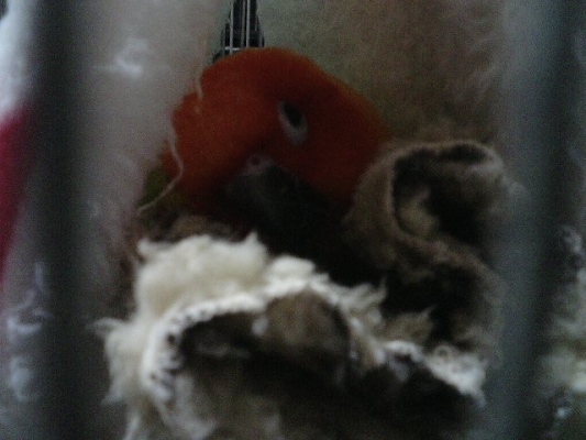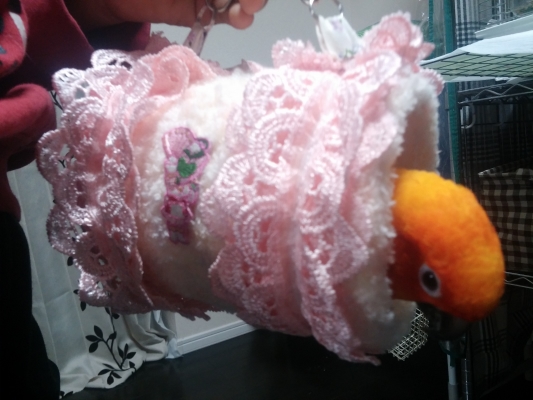お友達のオカメちゃんと コザクラ君は お手製のキャリーとぬくぬくカバーで、やはり 車中での留守番でした