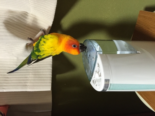 放鳥中は必ず目が届くようにしているのですが、あれ?一羽居ない。