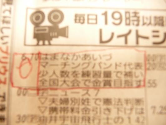 >昨日、娘のマーチングクラブがNHKに映りました!!
