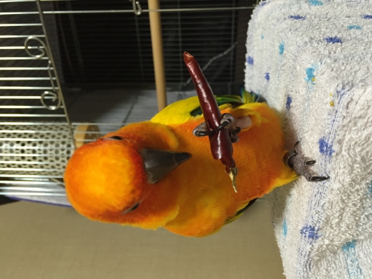 唐辛子、健康に良いと書いてあったので、寒くなってきたこの季節に体力を付けてもらおうと思って与えたんですが、はっきり言って食べてるのかどうかわかりません。無心になって齧ってはいましたが・・・
