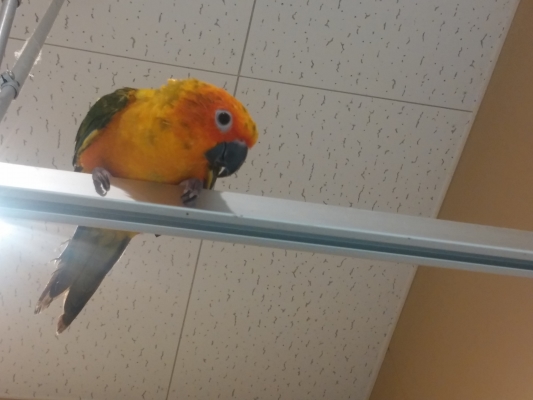 この部屋はリビングでなく「えぃ部屋」ですか!?だとしたら部屋の外に『ぱる放鳥中・要ノック!』と言う看板?でもぶら下げましょうw言葉は悪いですが目の上で良かったです。失明でもしたら目も当てられないですものね!!