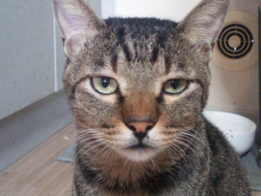 私もさぞ可愛かろうと、菜月にいちごの絵のついた、ペット用のお食事入れを与えたのですが、ものの見事に拒否・・