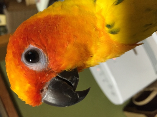 昨日、部屋でまったりしていた時に窓ごしのカラス?(黒い物)が横ぎった瞬間、ぱるがパニックになり、ギャーーと鳴いて違う部屋に飛んでいってしまいました。