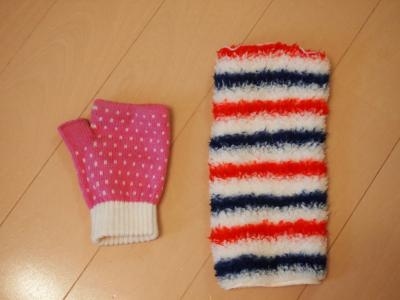 うちにあった、マンボースーツ?です こっちはアームカバー、ダイソーです。 大きさの比較ー
