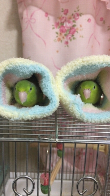 ゆめちゃんはマンボウ出来ませんでしたか!?ざんねーん。でもマーチのマンボウこれは可愛い〜♪釣り下げればバードベッドに早変わりw最近仲直りしたみたいですので2羽で一個のマンボウスーツに入れれば最高ですね^^