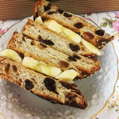 >パンにピーナッツバターを塗ってバナナと挟むと美味しいとちびまる子ちゃんでやっていたので試してみます^ ^笑
