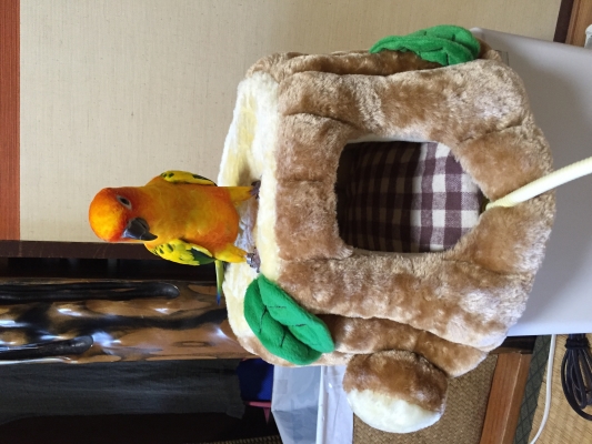 『切り株ハウス』購入しましょうwももちゃんへのプレゼント!破壊するとは限りませんよwインコは何にハマるか!?やってみなきゃ分かりません!何せ手袋に潜って喜んでいるインコもいるんですからね(*^^)v