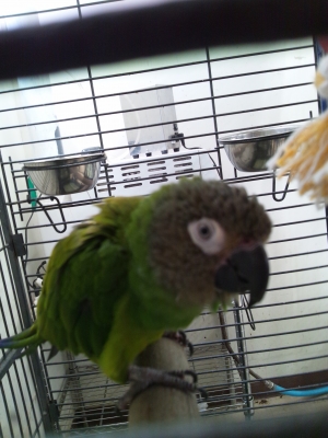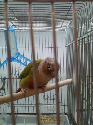 実家に居るオカメのピー太ともケージを並べて過ごさせたりして、