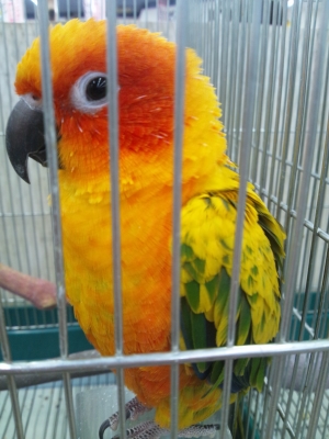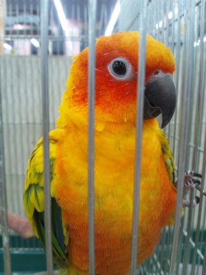 ケージの中にいれましたが。(ヨウムは、ビビリィなので慣らさないと 汗)