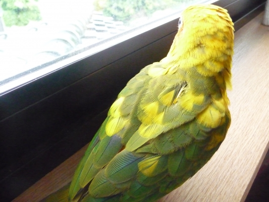 まだ、新居に慣れません。鳥も飼い主も。