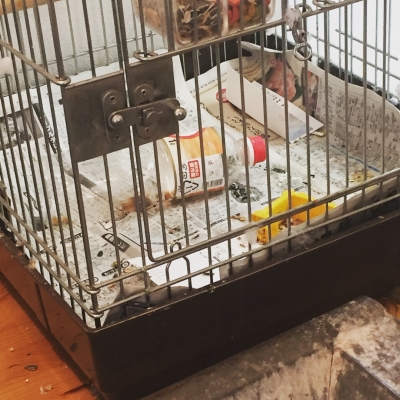 >昨夜はしぶしぶ手に乗ってくれましたが一緒の小屋では寝てくれませんでした。