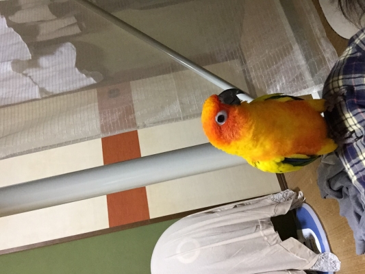 朝 水浴びして ご機嫌とってから 出掛けたのですが うちのコガネ ひーたんは 遅い帰宅に へそを曲げて 荒ぶっておりました
