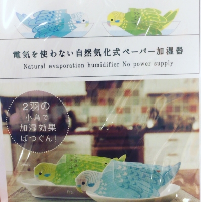 天井のクロスが駄目になる程の加湿器も困ったものですが、自分は喉が弱いみたいで加湿器が欠かせません!お写真の「ペーパー加湿器」見た目大変可愛いですが喉を守るのに何羽の加湿器が必要だろうヾ(o´∀`o)ノ