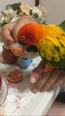 >奈々婦人に飲ませたら嘴に余りに合わなかったのか凄まじい叫び声をあげて部屋の中を猛スピードで旋回していました^^