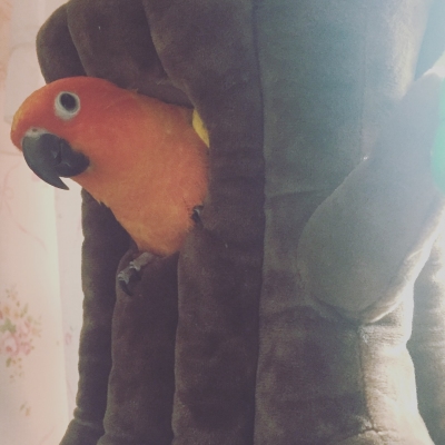 寒くなってきたのでゆめちゃんが放鳥中も切り株で過ごすようになりました(^O^)