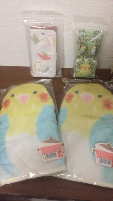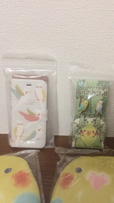 >ミトンと携帯ケースはインコの柄が素晴しい