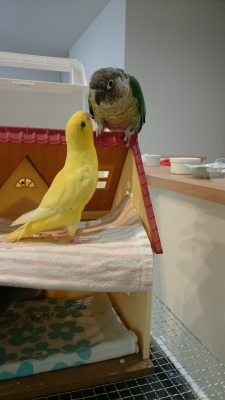 普段籠の中にいる時は籠を隣同士に並べているのですが、いつも側に寄っているので嫌いではないとは思うのですが、基本2羽とも人好きな手乗りインコですからね^^各自対鳥は二の次なのかもしれません( ´艸`)