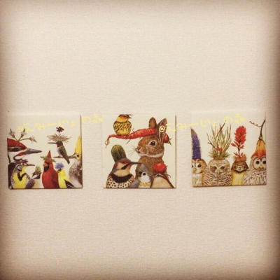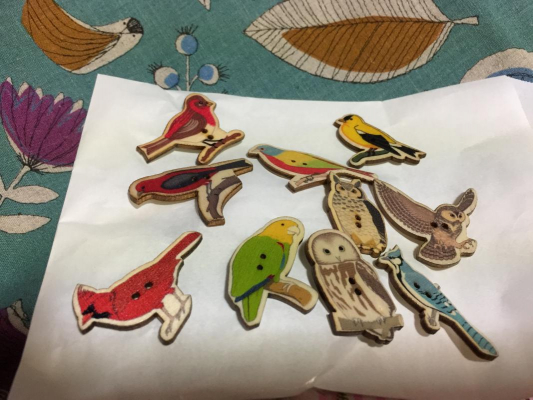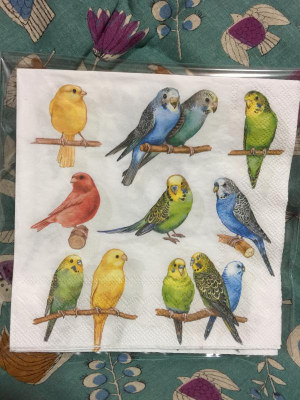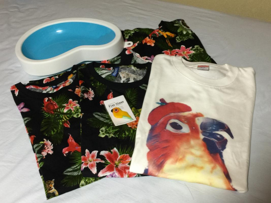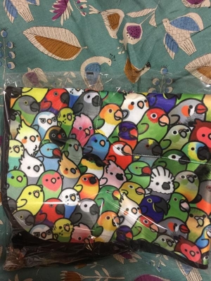 くたひめさんから素敵なプレゼントが届きましたねwどれも可愛い(^0^)それとエプロンも沢山の実存するインコ達が描かれていて素敵ですね~目が悪いので確認ですが、真ん中やや下の濃いオレンジの鳥がナナイロでしょうかね!??インテリアパネルにもコガネがいますね!これも素敵ですd(*´▽`*)b