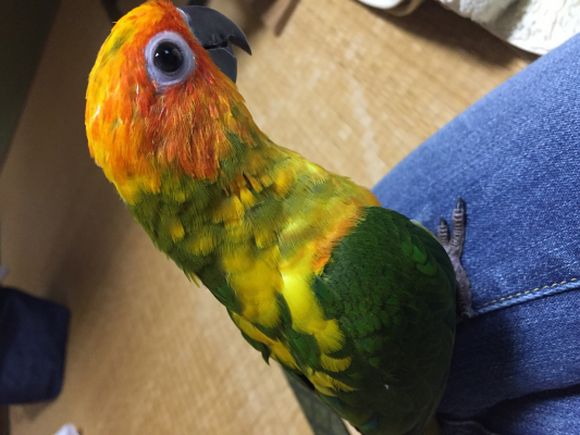 写真のぱるちゃん、お迎え当初は完全に緑ですね〜