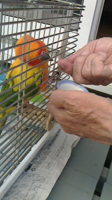 ついに、ケージ越しではありますが、カキカキできるようになりましたヽ(^。^)ノ