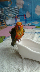 (バルは繁殖用だったので、手乗りにする為のクリップはされてなかった)