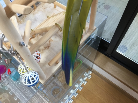 愛美(バードベッドの中)と私(寝室)はお昼寝中だったのですが、地震が起きた時は鳴きも暴れもしていなかったですね。。。