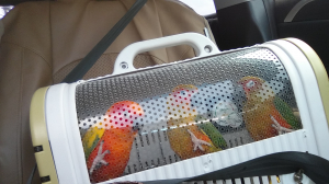 キャリーに入りきれないのかもしれないですが、ひまちゃんはこの写真にいないのね!??偶然にも3羽で足を上げて同じポーズ!「や〜!!」ってダチョウ倶楽部みたい^^でもいつの日か、4羽でポーズを決めて『ギャートリズ♪』を結成して頂きたい(^^♪