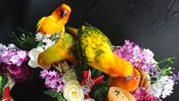 バードスタンドを活用した「しめ縄」お見事です!!これは流石に四兄弟は齧れないだろうから暫しお借りすると言う事で^^